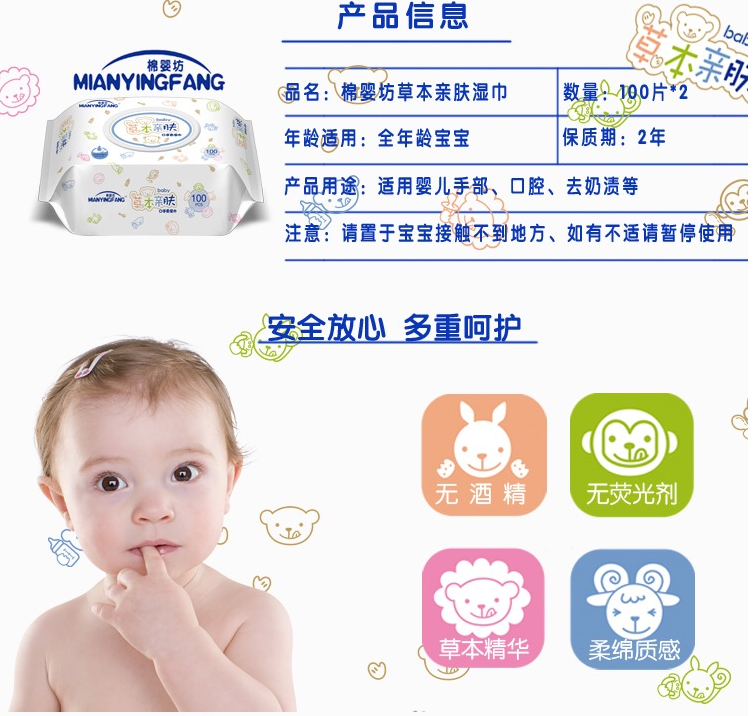 棉婴坊 草本亲肤 加厚湿巾 100p