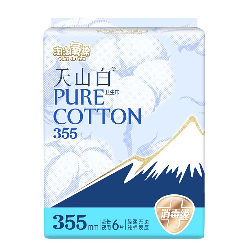 淘淘氧棉天山白纯棉夜用卫生巾355mm*6片