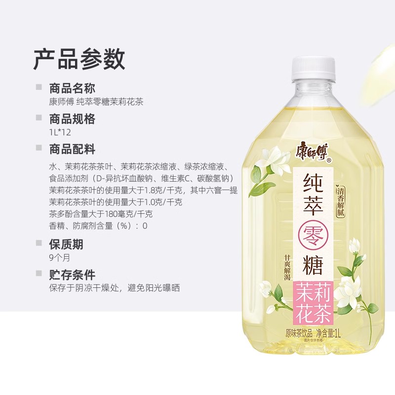 纯萃 零糖 茉莉花茶 1L*12瓶/箱