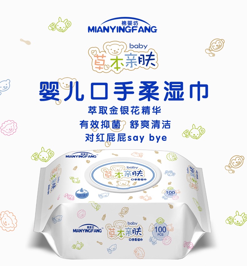棉婴坊 草本亲肤 加厚湿巾 100p